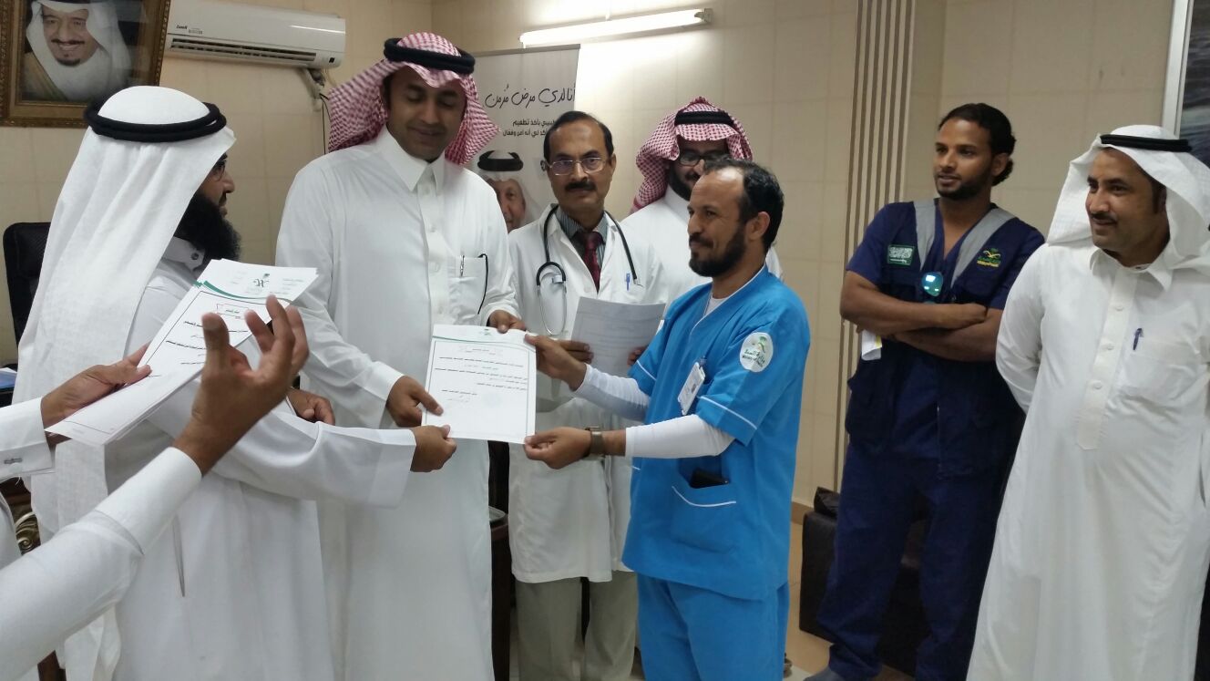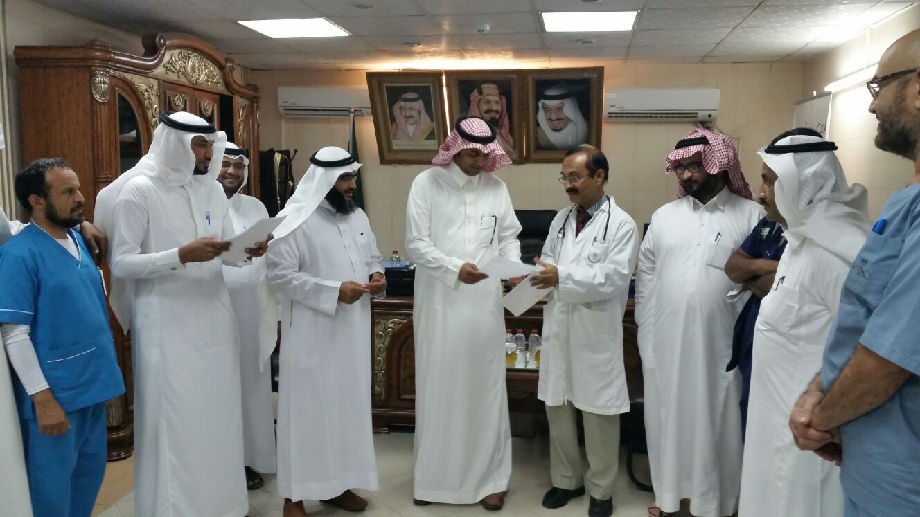 قام مدير مستشفى العارضة العام الاستاذ / على محمد عقيلي وبحضور مدير إدارة الأزمات والطوارئ بصحة جازان الاستاذ/ عبد الرحمن دغريري اليوم الأحد 3 صفر 1437 , بتكريم الفريق الطبي والاداري والممرضين المشاركين في اسعاف حالات الحوادث المرورية التي وصلت للمستشفي يوم الجمعة:24 محرم1437 حيث بلغ عدد المصابين ثمانية عشر حالة في وقت واحد . مثمنا لهم دورهم الطبي والانساني والمساهمة الفاعلة في تقديم الخدمة الطبية للمصابين وتضميد جراحهم ..