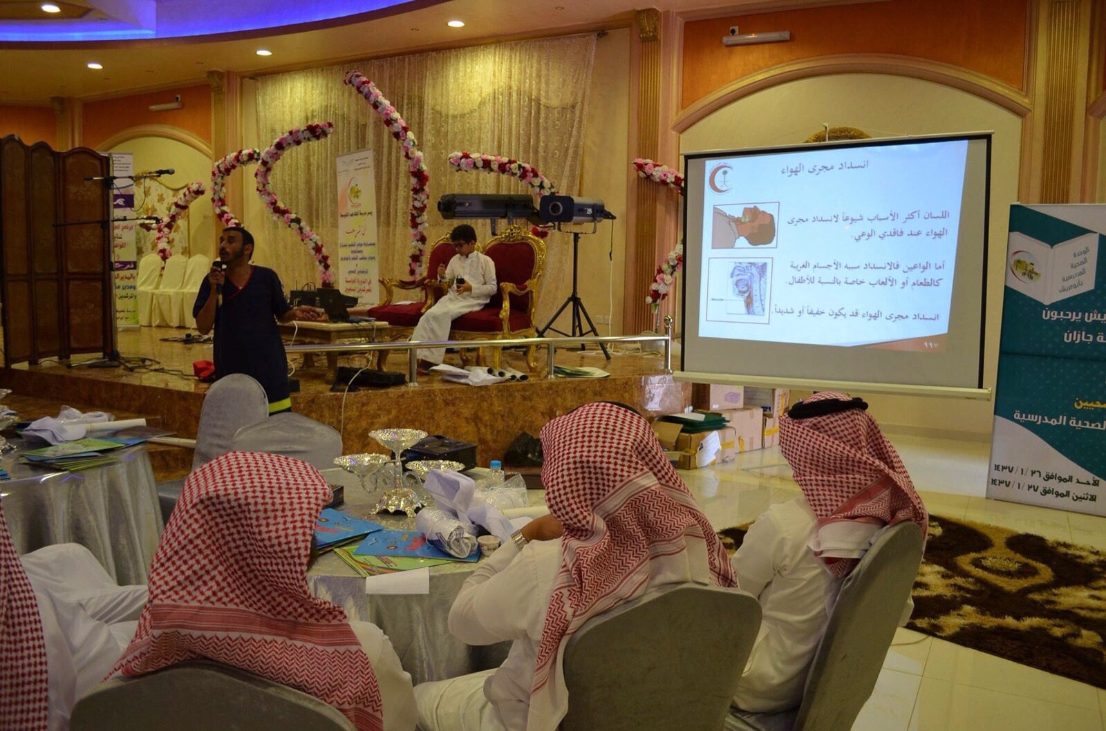 صرح المتحدث الرسمي للهلال الأحمر السعودي بجازان بيشي الصرخي بأن الخدمات المقدمة للمواطن والمقيم لا تقتصر على الخدمة الإسعافية بل هي تركز ايضا على الجانب التوعوي والتدريبي وذلك من خلال عقد دورات تدريبية ومحاضرات حيث بلغت احصائية مركز التدريب لهيئة الهلال الأحمر السعودي بمنطقة جازان للعام المنصرم ١٤٣٦( ٥٢) دورة تدريبية للمجتمع في برنامج الامير نايف للإسعافات الأولية شملت معظم شرائح المجتمع من القطاعين الحكومي والأهلي حيث كان للقطاعات الحكومية المدنية والعسكرية النصيب الأكبر من الدورات التدريبية في الإسعافات الأولية وقد استفاد من هذه الدورات في هذا العام (٨٥٨) متدرب حيث ان هذا البرنامج يستهدف الفئات الغير صحية بهدف إيجاد أشخاص لديهم المعلومة والمهارة الإسعافية يستطيعون التعامل مع جميع المصابين والمرضى في حالة مصادفتهم مثل هذه الحالات وتقديم الإسعافية الأولية لهم حتى وصول الفريق الإسعافي .علما ان هذه الدورات قد نفذت في معظم محافظات المنطقة اضافة الى تنفيذ محاضرات في الإسعافات الأولية في الاماكن العامة ك المولات والمدارس وقد نفذ المركز (٣٥) محاضرة استفاد منها مايقارب (١٤٠٠) حاضر .ولم يقتصر مركز التدريب على تدريب المجتمع بَلْ يقوم بعقد دورات لمنسوبي الهيئة الفنين والاداريين بهدف مواكبة كل مايستجد من معلومات طبية وإدارية برفع كفاءة الأداء للموظفين لديها .