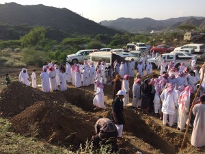 وتمت الصلاة عليه عصر اليوم في جامع عيبان ، بحضور سعادة مدير التعليم بمحافظة صبيا الدكتور عسيري الأحوس ومساعديه الأستاذ ضيف الله الحازمي والأستاذ علي الذروي ومدير مكتب تعليم العيدابي الأستاذ : أحمد الليل وجموع غفيرة من مختلف محافظات المنطقة .