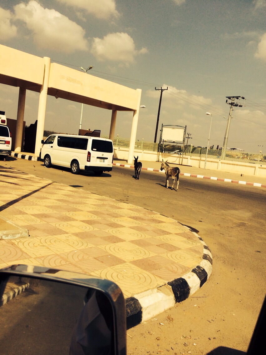 وفي نفس اليوم وثق احد المراجعين عدد من الحمير عند باب المستشفى وتحت مظلات السيارات في منظر غير حضاري.