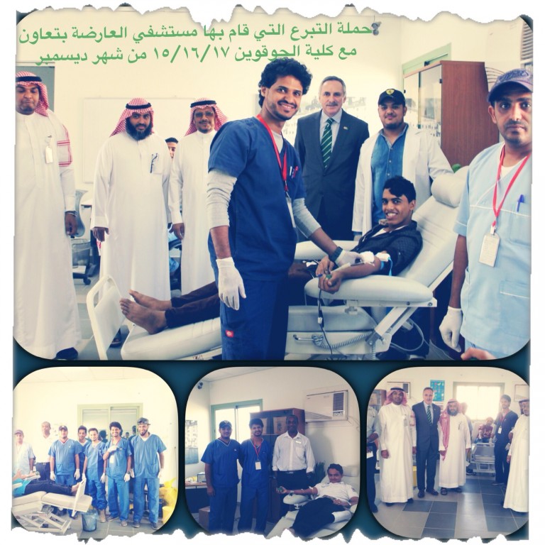 قام مستشفى العارضه العام بتنفيذ حملة تبرع بالدم وبالتعاون مع الكليه الكندية بجازان الكونجوين (Algonquin college )وذلك بمقر الكليه