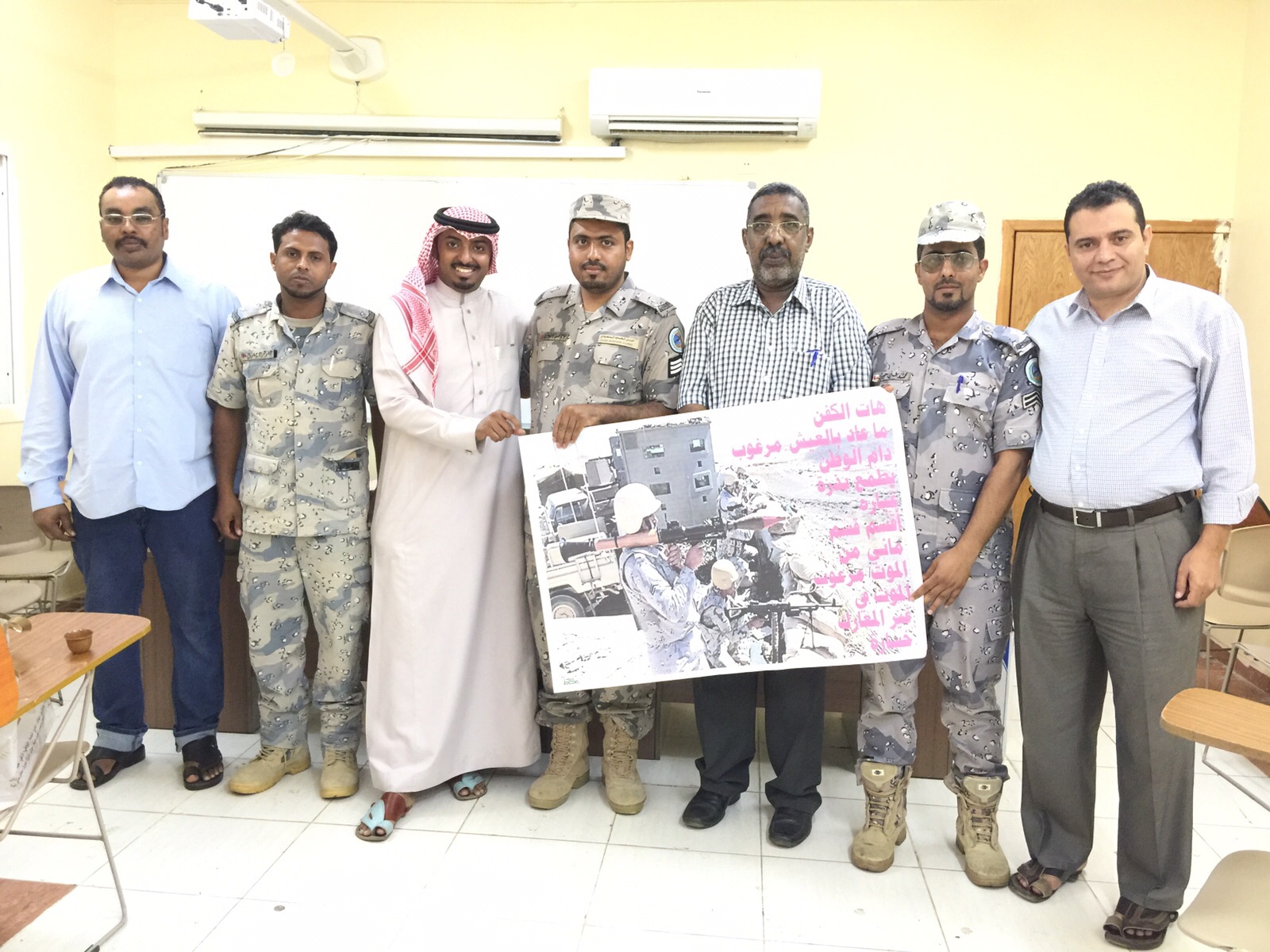 في بادرة هي الأولي من نوعها وصل أربعة أفراد من جنود حرس الحدود السعودي لمكان مناقشة مشروع تخرجهم من برنامج الصحافة والإعلام بالتعليم عن بعد التابع لجامعة جازان
