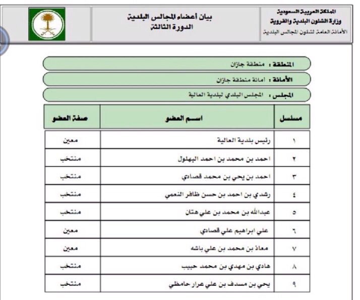 أعلنت امانة المجالس البلدية بوزارة الشؤون البلدية والقروية الاعضاء المعينين والمنتخبين في كافة المجالس البلدية .