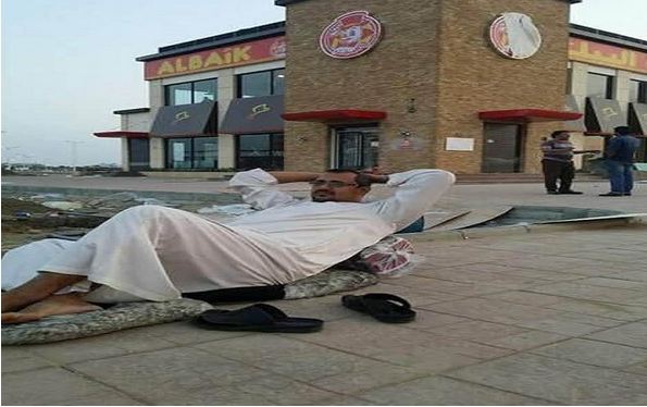 تداول مغردون على موقع “تويتر” صورة لمواطن يقيم أمام فرع مطعم “البيك” للوجبات السريعة بجازان، قبل أسبوع من افتتاحه، ولقيت تلك الصورة انتشاراً واسعاً.