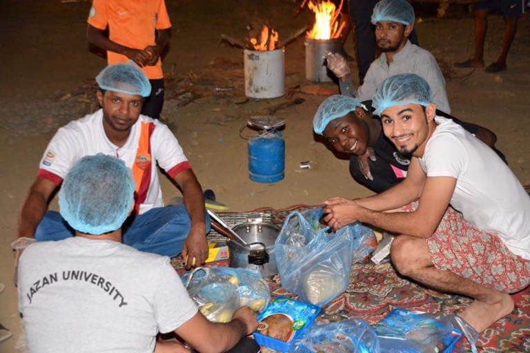 بعد ذلك أقيم برنامج الطبخ الخلوي بين الفرق المشاركة حيث عمد كل فريق إلى اختيار الأماكن المناسبة حول الملعب وبدأوا في التفنن بطبخ الأكلات المتنوعة والمشاوي اللذيذة وسط تصاعد الروائح الشهية التي ملأت أرجاء المكان ، حيث قام كل فريق بترتيب اطباقه وتزيينها وعرضها على لجنة التحكيم لتقييم جودة الطبخ ولذة المذاق ودرجة الإستواء .