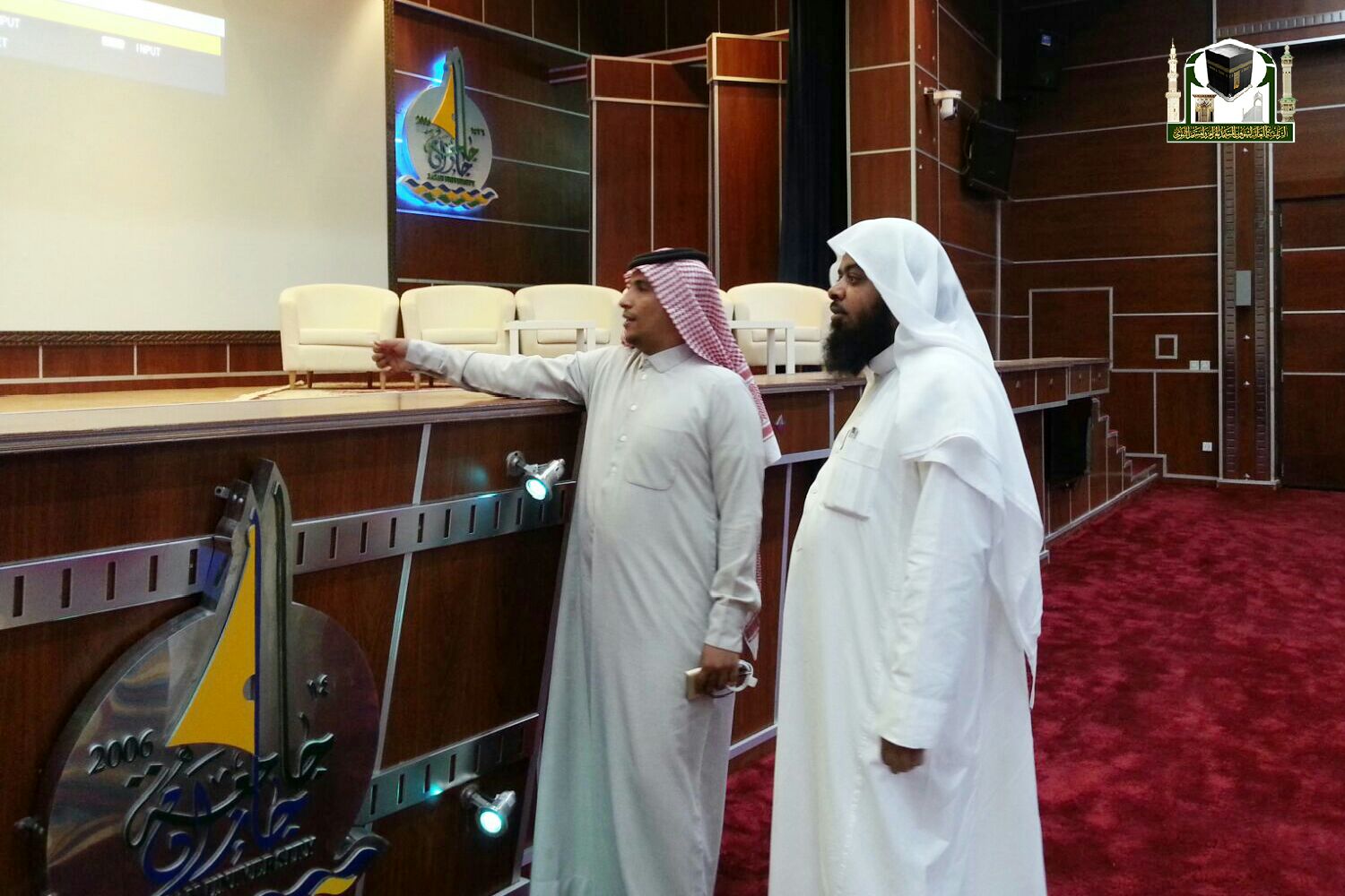 وأضاف الأستاذ العسيري بأنه قد تمت زيارة مسرح الجامعة وقاعات التدريب المختلفة وبالخصوص قاعات الاستماع وذلك بغرض الوصول لرؤية متقدمة و متميزة ولتفعيلها بالمسجد الحرام , وفي ختام الزيارة تم تبادل الهداية التذكارية