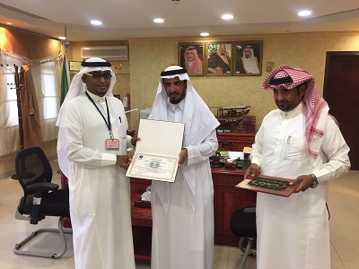 كرم مدير عام الإدارة العامة لشؤون الزراعة بمنطقة جازان المهندس غانم الجذعان ، مندوب الإدارة العامة بخلية الشؤون المدنية بقوة جازان الفني الزراعي : منير محمد رفاعي ، وذلك لقاء تميزه في آداء مهام الإدارة العامة بخلية الشؤون المدنية بقوة جازان لدعمه المجهود الحربي خلال شهر ربيع الثاني للعام ١٤٣٧
