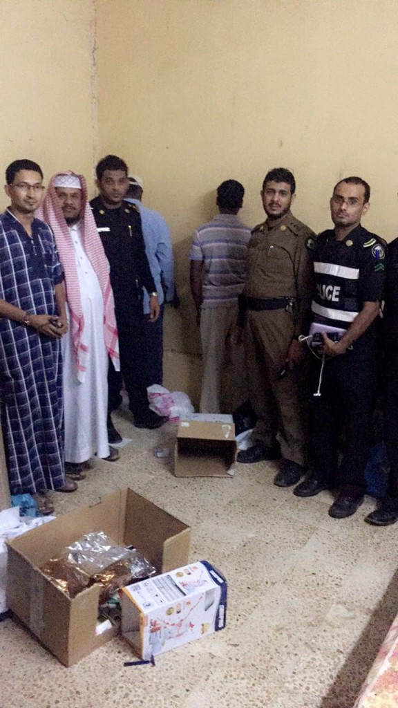 عندها طلبت الدورية الدعم للموقع وفقا لما تقتضية الحالة اﻷمنية ليتم تعزيزهم بدوريات أخرى بقيادة ضابط الميدان الملازم أول صالح زيدان والدخول للسكن ما أسفر عن ضبط مصنع خمور مجهز بالكامل وعدد 7 جوالين سعة 15 لتر مليئة بمادة العرق وعدد من القوارير الاخرى المجهزة للترويج.