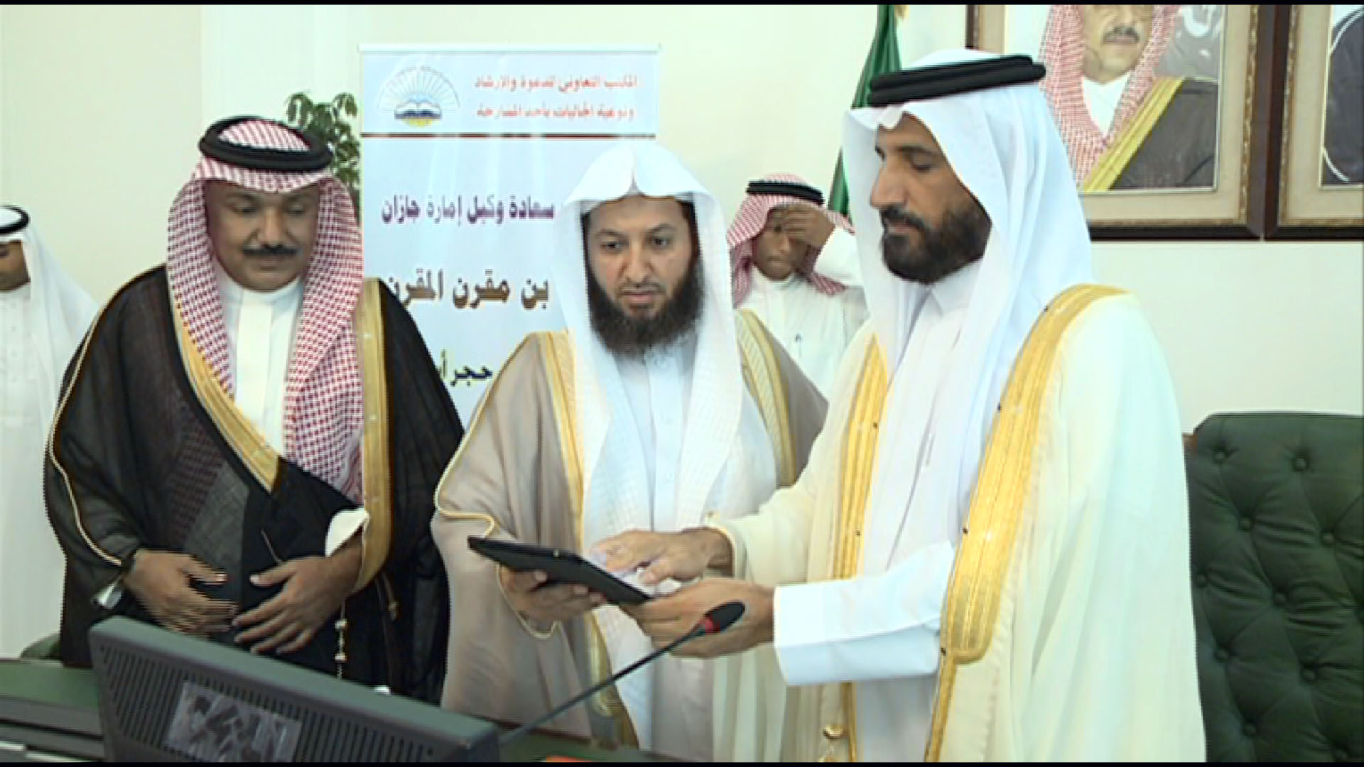 دشن وكيل إمارة جازان د. سعد المقرن بعد ظهر اليوم بديوان الإمارة وقف شهداء عاصفة الحزم الذي أطلقه المكتب التعاوني للدعوة والارشاد بأحد المسارحة وفاء وعرفانا لشهداء عاصفة الحزم وسط حضور كبير من رجال الأعمال والإعلام ورؤساء الدوائر الحكومية.