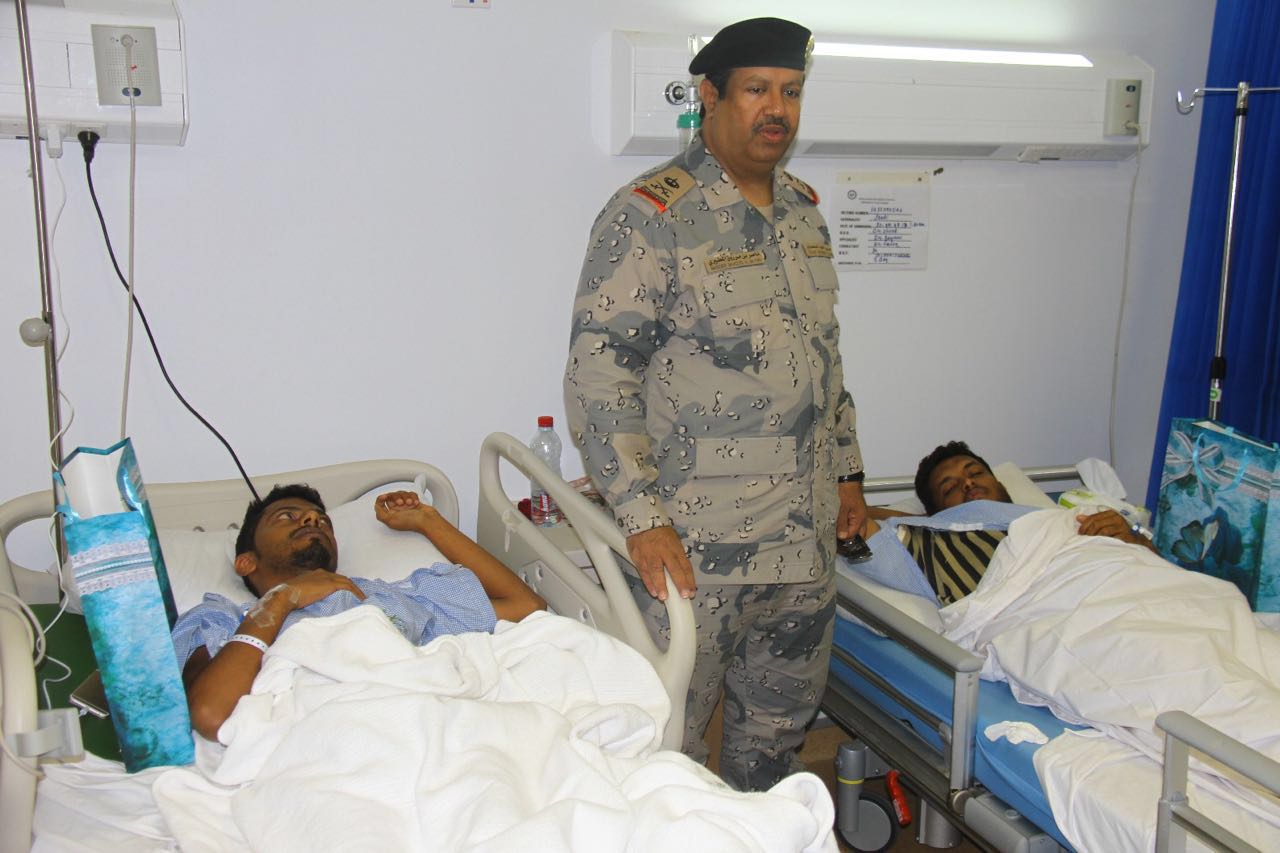 قام مساعد قائد حرس الحدود بمنطقة جازان اللواء الركن ناصر بن مرزوق المطيري بزيارة للمصابين الجندي فيصل النعمي والجندي حسام بعيطي من منسوبي مركز حرس الحدود أبوسبيله التابع لقطاع حرس الحدود بمحافظة العارضة بمنطقة جازان واطمأن على صحتهم ووضعهم الصحي يرافقه عدد من الضباط والأفراد بحرس الحدود مدير إدارة العمليات العقيد سالم الشهري والمقدم دكتور محمد ابو السيل ضابط التنسيق الطبي بوزارة الداخلية والمشرف على الشؤون الطبية بحرس الحدود بجازان في زيارتهم للجنديين فيصل النعمي وحسام بعيطي في مستشفى الأمير محمد بن ناصر بجازان لإطمئنان على صحتهما جراء اصابتهما في انفجار لغم استهدف دورية تابعة لحرس الحدود بقطاع العارضة