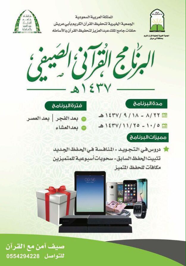 البرنامج, الصيفي, العزيز, القرآن, القرآني, الملك, بالأساملة, تنظم, جامع, حلقات, عبد, لتحفيظ
