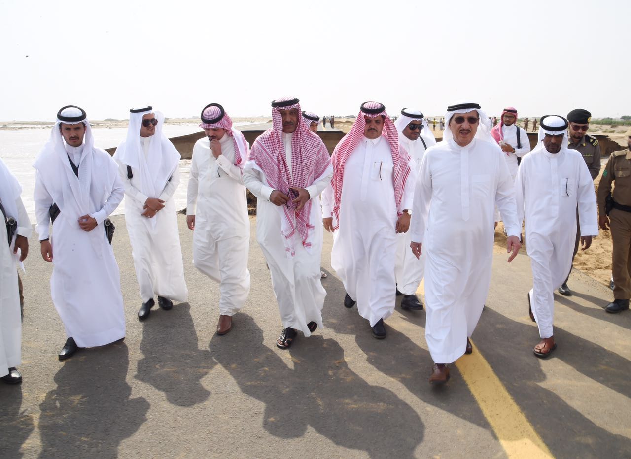 ووجه أمير جازان خلال الجولة باتخاذ كافة الإجراءات العاجلة بالاستعانة بمعدات واليات الجهات الحكومية ذات العلاقة لفتح الطريق الدولي وتغير مسار المياه المتدفقة بكثافة من خلال هدم بعض العبارات بالطريق الدولي، وتشكيل فريق طوارئ بمركز قوز الجعافرة بمشاركة أعضاء المجلس البلدي والمشايخ للأشراف على الوضع والتنسيق بين الجهات المتواجدة وتسهيل عملها .