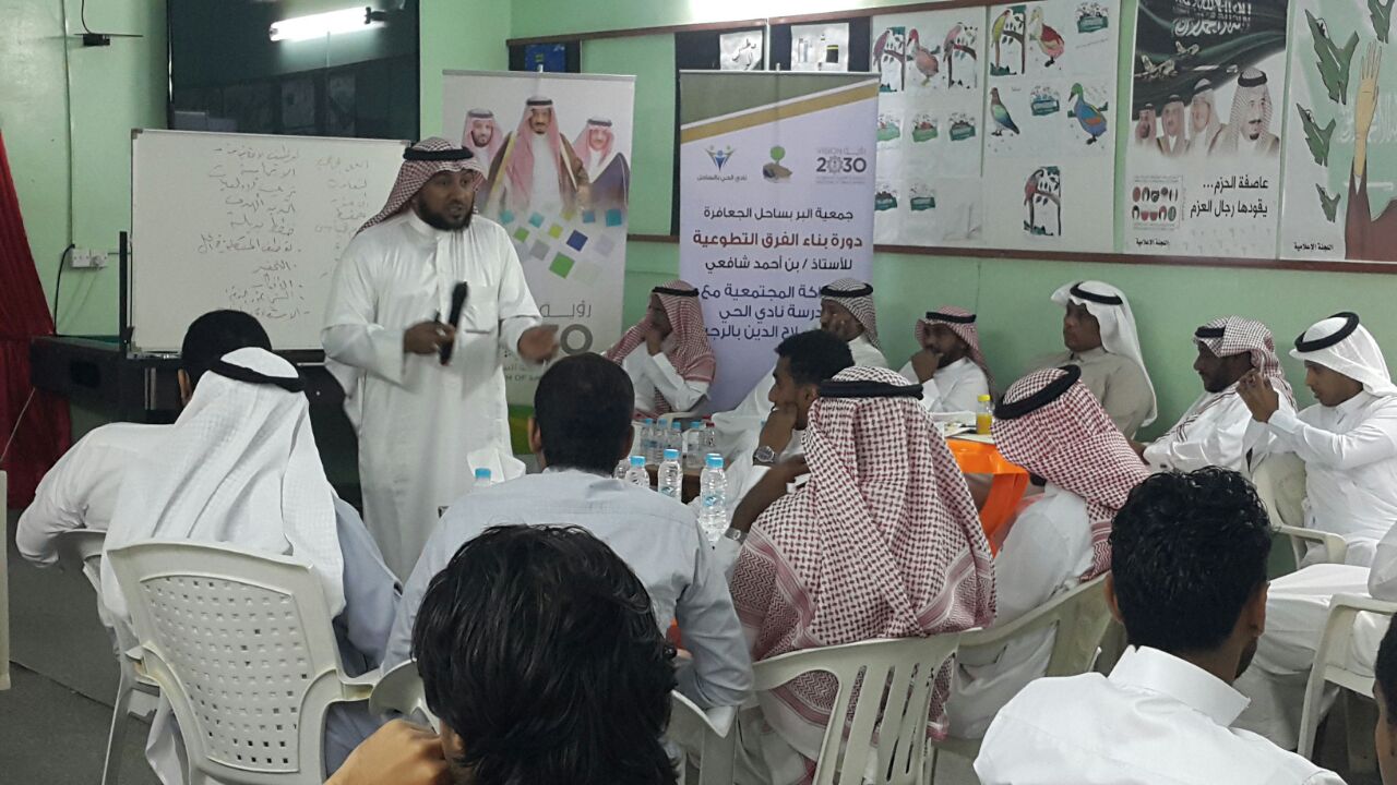 إنطلاقا من دورها المجتمعي الرائد وبرامجها المتواصلة في خدمة المجتمع فقد نفذت جمعية البر الخيرية بقوز الجعافرة دورة لبناء الفرق التطوعية بالتعاون والشراكة مع نادي الحي بثانوية صلاح الدين بالرجيع نفذها المدرب والمشرف التربوي بإدارة تعليم صبيا اﻷستاذ إبراهيم بن أحمد الشافعي برعاية شيخ شمل قبائل الجعافرة الشيخ أحمد بن ناصر اﻷخرش.