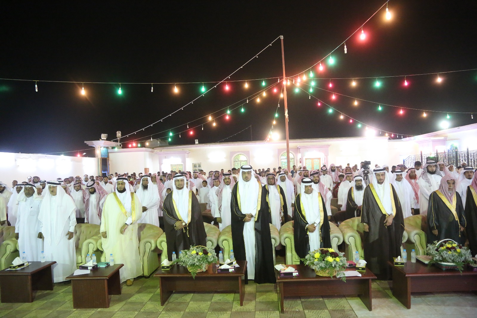 ثم قدمت اللجنة الاعلامية عرضا مرئيا عن المحتفى به ، وبعد ذلك القى الشاعر علي بن حمد طاهري ” شاعر الحزم ” قصيدة شعرية نالت استحسان الحضور ، ثم القى الشيخ طلال بن محمد خواجي شيخ قبيلة الخواجية بالنعامية كلمة نيابة عن القبيلة تحدث فيها عن مناقب الشيخ محمد خواجي ودورة في الاصلاح بين افراد القبيلة ومساهماته في الاجتماع السنوي لأفراد القبيلة على مستوى المملكة ، ودوره في تأسيس الصندوق الخيري ، وبعد ذلك القى المحتفى به كلمة شكر فيها رئيس المركز والضيوف من مشائخ شمل وعرائف واعيان ورؤساء ادارات حكومية على حضورهم ، وقال ” والله وددت لو تقبل راس كل واحد منكم لما غمرتموني به ، واسال الله التوفيق والعون ” وفي نهاية الكلمة اثنى على الجنود المرابطين وسال الله عز وجل النصر والتمكين لجنودنا المرابطين على الحدود ” .