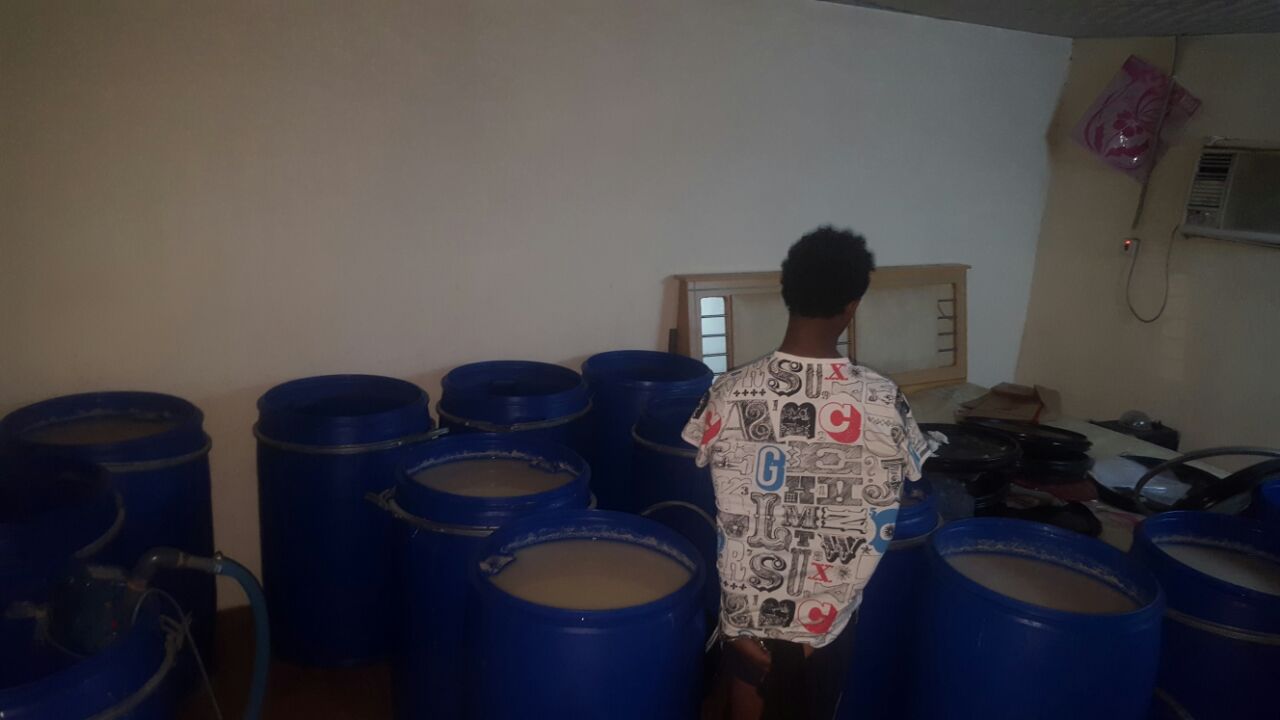 وأوضح الناطق الإعلامي بشرطة منطقة جازان المقدم عبدالرحمن الزهراني بأن الدورية لاحظت إنتشار رائحة المسكر بالقرب من موقع الضبط حيث قامت بتمشيط الموقع ومداهمة مزرعة مجاورة حيث حاول شخص من الجنسية اﻹفريقية الهروب لتقوم الدورية بمتابعته والقبض عليه وأضاف الزهراني بأنه عثر بداخل المزرعة على مصنع يحتوي 9 براميل كبيرة الحجم مليئة بمادة العرق المسكر إضافةً إلى قوارير معبأة ومعدة للتوزيع .