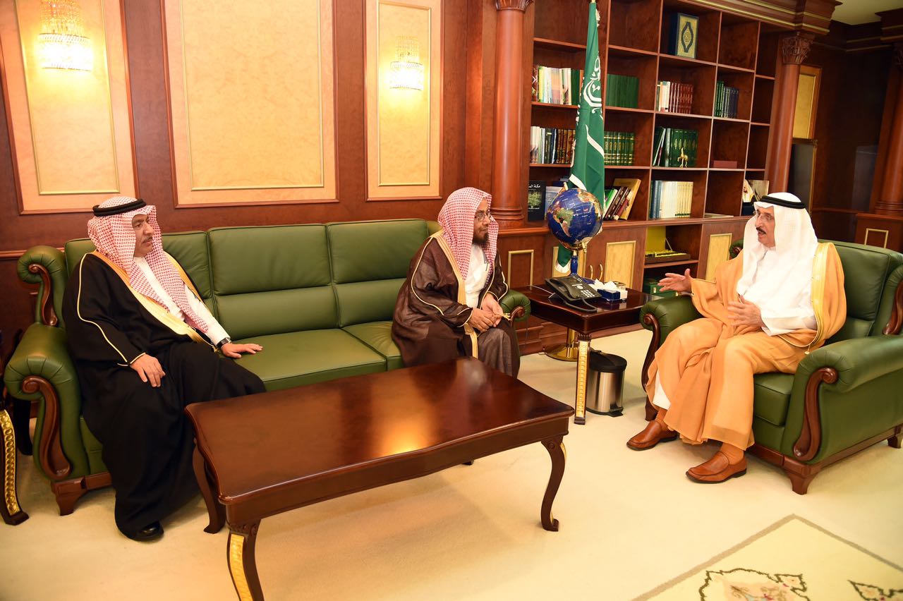 وفي بداية اللقاء رحب أمير جازان بمعالي الشيخ المطلق ومعالي الأمين العام والوفد المرافق لهما متمنياً لهم طيب الإقامة و التوفيق و السداد في المهام الموكله لهم