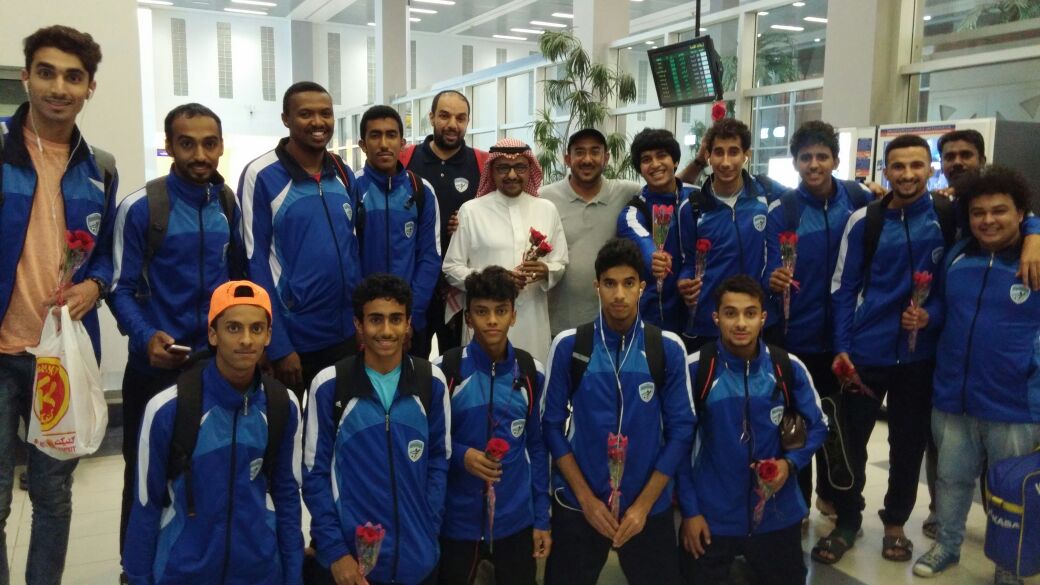 فريق الطائرة فور وصوله مطار الملك عبدالله بجازان ، بعد تخطي نادي الاهلي بنتيجة مشرفة للجميع .