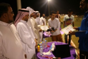 وفي نهاية المباراة سلم الرائد محمد ظافري الحكام المشاركين بالدورة جوائزهم وسلم الميداليات الفضية لفريق أبو المض وكأس البطولة والميداليات الذهبية للبطل فريق السلام وقد عبر الحضور عن سروره واستمتاعه بهذه الدورة والنجاح الكبير الذي صاحب النهائي والذي يعبر عن الدور الكبير الذي يلعبه مجلس فرق القطاع الجنوبي برئاسة المحنشي ونائبه الجبيلي وبقية لجان المجلس ومذلك المجهود الواضح من الصالحي والدغريري وزملاؤهم في التنظيم .