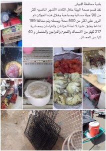 ومدير صحة البيئة أ / عيسى هديسي نفذ خلال الثلاث الأشهر الماضيه أكثر من 90 جولة مسائية وصباحية وخلال هذه الجولات تم المرور على اكثر من 500 محلاً وبسطه وتم مخالفة 199 نشاط وطبق عليها لا ئحة الجزاءات والغرامات ومصادرة 217 كيلو من الأسماك واللحوم والدواجن والخضار و 40 لترا من العصائر.