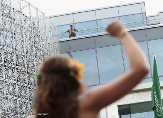 نظمت 4 ناشطات من منظمة “فيمن” النسائية احتجاجاً أمام السفارة السعودية فى مدينة برلين الألمانية تضامناً مع حملة قيادة المرأة للسيارة في المملكة .