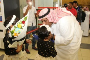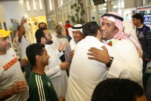 وكان في مقدمه مستقبليه مدير مكتب الهيئة العامة للرياضة بمنطقة جازان الأستاذ إبراهيم الرياني و عدد من زملائه الموظفين بمكتب جازان وإدارة بيت الشباب وأصدقائه ومحبيه وذلك تكريما له على الدور البطولي في تلك الحادثة.