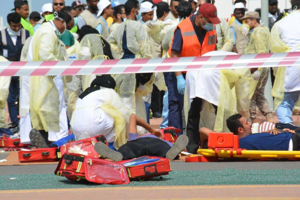 وتواجد في موقع الحدث عدد ” 10 ” فرق طبية ما بين أطباء ومسعفين وممرضين , بالإضافة إلى عدد ” 15 ” فرق اسعافية مجهزة تجهيزاً كاملاً تواجدت بالموقع , حيث تولت عملية فرز وتصنيف الحالات وتقديم العلاج الطارئ في موقع الحدث ونقل الحالات الى المستشفيات وفق الخطة المعتمدة .