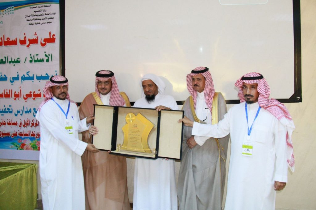 شرف مجمع تحفيظ ديحمة بزيارة محافظ صامطة الأستاذ عبدالعزيز بن محمد الطيار يصحبه رئيس مركز السهي الأستاذ مقعد السبيعي و مدير مكتب التعليم بمحافظة صامطة علي بن محمد العطيف للمشاركة بتكريم المعلم المتميز من مجمع مدارس تحفيظ ديحمة والحاصل على المركز الأول في مسابقة التعليم للتميز على مستوى الوزارة في دورتها السابعة الأستاذ أحمد بن شوعي ابو القاسم حناني وكرم الطيار أيضا المعلمين المتميزين بمجمع مدارس تحفيظ ديحمة