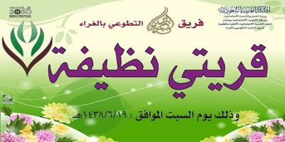نفذ فريق النخبة التطوعي بقرية الغراء برنامجه ( قريتي نظيفة) يوم السبت الموافق 1438/6/19 هـ حيث قام الفريق بالتعاون مع بلدية صبياء بتنظيف شوارع القرية وممراتها لتكون القرية نظيفة وهي قيم تسهم في زرعها مثل هذه البرامج في شبابنا بالاضافة لروح التعاون وقد توجه رئيس الفريق الأستاذ / محمد علي رفاص و نيابة عن زملائه الأعضاء بالشكر الجزيل لبلدية صبياء مثمناً تعاونهم لانجاح البرنامج وتحقيق نظافة القرية وهو الهدف الذي حققوه بتوفيق الله ..