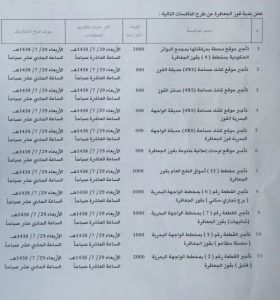 – تأجير موقع محطة بمرفقاتها بمجمع الدوائر الحكومية بمخطط(4) بقوز الجعافرة.