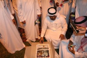 من جانبه قال الدكتور خالد بهلول لقد فاجؤني المرشدون الصحيون بهذا التكريم والتقدير والذي سيظل وسام شرف أعتز به ونحن اجتمعنا بخصوص تسليمهم شهادات الشكر والتقدير لجهودهم في المعرض الذي أقيم ولم اتوقع منهم هذا التكريم وأضاف المفروض نحن من نكرهم ولكنني لم أحضر سوى بالشهادات وبعض الطرط والورود والحلويات وتفاجأت بهذا التكريم والمناسبة الكبيرة المعدة وبعد تسليم هدية التكريم للدكتور قام بتقطيع الطرط وتوزيع الورود على المرشدين الصحيين بعد ذلك دعي الحضور لوجبة العشاء المعدة لتكريم الدكتور خالد بهلول .