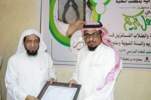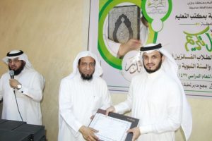 على شرف مدير مكتب التعليم بصامطة الأستاذ علي محمد عطيف كرمت صباح هذا اليوم وحدة التوعية الإسلامية بمكتب التعليم بصامطة المدارس المشاركة والطلاب الفائزين في مسابقة وزارة التعليم للقرآن الكريم والسنة النبوية وعلومهما تدبر في مجالاتها المختلفة على مستوى مدارس المكتب وقد بلغ عدد الطلاب المكرمين مائة طالب من ثلاث وعشرين مدرسة صرح بذلك الأستاذ محمد السهلي مدير وحدة التوعية الإسلامية بمكتب التعليم بصامطة مقدما شكره للطلاب والمدارس المشاركة ولمدير مكتب التعليم بصامطة على تشريفه حفل التكريم .