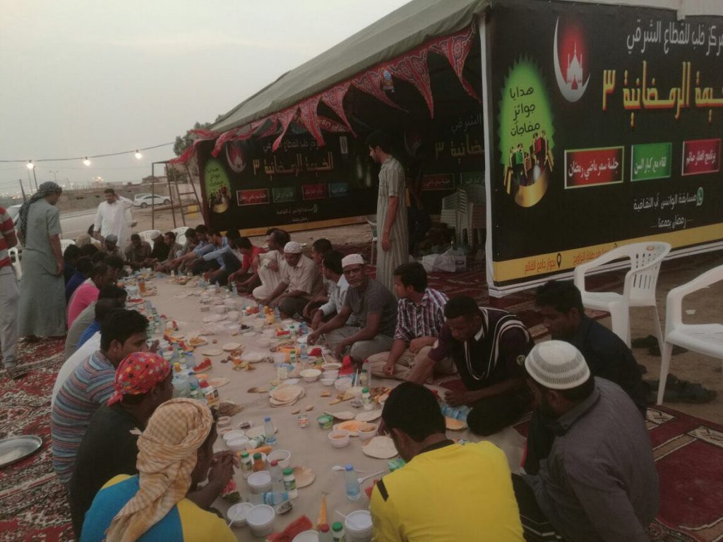 أسهمت الخيمة الرمضانية بمركز خلب الاجتماعي خلال الثلاثة الأيام الماضية من رمضان في تفطير 150 صائم من مختلف الجنسيات .