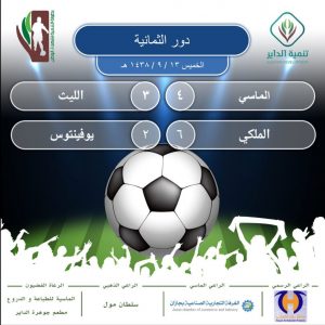 ضمن بطولة شهداء الوطن على ملعب التنمية بحي المضبعة والتي تنظمها لجنة تواصلت فعاليات البطولة أمس الخميس المباراة الأولى اقيمت بين فريقي الماسي والليث وانتهت المباراة بفوز الماسي بنتيجة ٤ – ٣ وحصل على جائزة أفضل لاعب في المباراة اللاعب ( خالد فرحان السلمي) من فريق الماسي