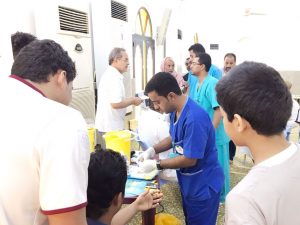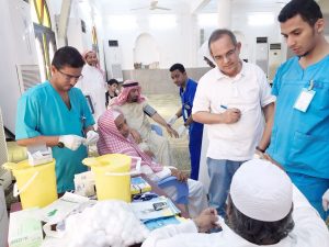 في مبادرة جميلة فريق صحي من مركز الرعاية الأولية بصامطة بقيادة المشرف الفني بالقطاع الجنوبي الدكتور / جمال بدر ومشرف التمريض بالمركز الاستاذ / عبدالله محمد حكمي وفني التمريض عصام علي حملي و علي ابراهيم خلوفه يقوم بزيارة مسجد الراحة وعمل توعية صحية عن السكري والضغط خلال شهر رمضان المبارك والمضاعفات التي قد يصاب بها في حال عدم الانتظام في العلاج وصاحب ذلك قياس نسبة السكر والضغط للمصلين وشاهد تفاعل جميل منهم وفي الأخير شكر الفريق إمام المسجد الاستاذ / عبداللطيف عمر المدخلي اتاحت هذه الفرصة .