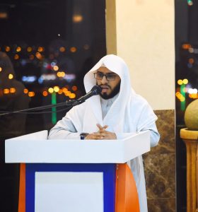وبدء الحفل المقام بهذه المناسبة بتلاوة آيات من القرآن الكريم ، ثم ألقى مدير عام خدمات المياه بالمنطقة المهندس بندر بن ناصر جبر كلمة أعرب في مستهلها عن سعادته وجميع منسوبي الإدارة والمشاركين في المسابقة برعاية سمو نائب أمير المنطقة للحفل الختامي للمسابقة ، مستعرضاً أهم الإنجازات والنتائج التي حققتها الجائزة سعياً لربط المتسابقين وموظفي الإدارات الحكومية بكتاب الله تعالى تلاوة وحفظاً.
