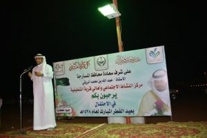 حيث شارك بعد صلاة المغرب من أول أيام العيد الإحتفال الذي نظمه مركز النشاط الاجتماعي بقرية الشطيفية والأهالي ، وتخلله عدداً من البرامج الترفيهية والوطنية ، وسط تفاعل كبير وبحضور المشايخ والأعيان.