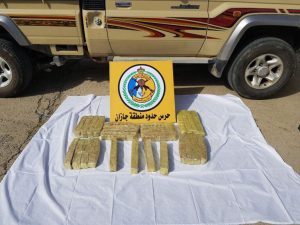 صرح المتحدث الرسمي لحرس الحدود العقيد البحري الركن / ساهر بن محمد الحربي بأن رجال حرس الحدود بمنطقتي (جازان ، نجران ) تمكنوا بعد توفيق الله خلال الفترة من ٢٢ /٩/ ١٤٣٨هـ إلى ٧ /١٠/ ١٤٣٨هـ من إحباط عدة محاولات لتهريب كميات من مادة الحشيش المخدر، حيث تم رصد أشخاص قادمين من الاراضي اليمنية أثناء محاولتهم التسلل للمملكة عبر الحدود البرية لمنطقتي (جازان، نجران) لتنفيذ مخططاتهم في تهريب الموادالمخدرة والتي تستهدف النيل من شباب المملكة حفظهم الله مما حتم التعامل معهم بكل حزم وقوة ونتج عن ذلك القبض على عدد (١١) احد عشر شخصاً من الجنسية الأثيوبية و(٢) شخصان صوماليا الجنسية و(٢) شخصان سعوديا الجنسية و(١) شخص من الجنسية اليمنيه ..