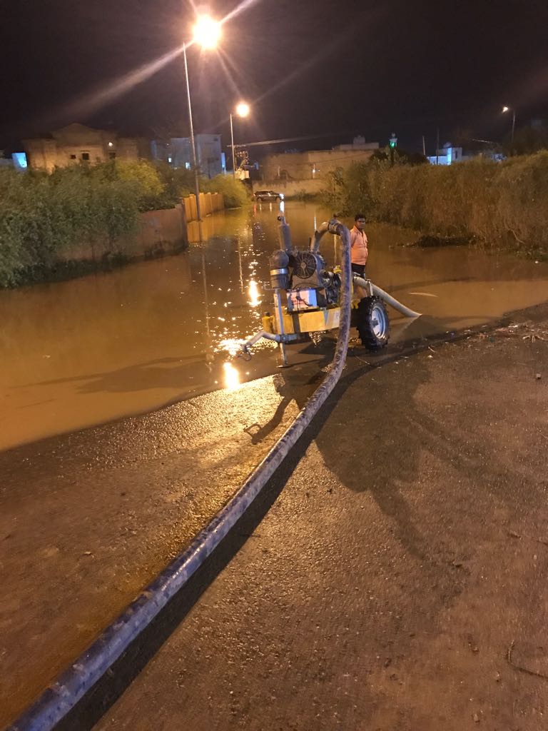 ٢- تم توجيه فاكيوم شركة النظافة لسحب المياه من المدينة في عدة مواقع هي مسجد الزاهر – جوار الشعفي . كما تم استئجار ٢ وائت صغير لمسجد علي برقش – جوار منزل د. عبد الله مهدي بالحارة الغربية و جوار بئر الحازمية و الحديقة الجنوبية