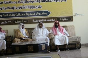 دشن سعادة محافظ صبيا الأستاذ/علي بن موسي زعله صباح اليوم الاثنين في مكتبه بحضور سعادة مدير شؤون المساجد بالمحافظة الشيخ/ عيسى الوحيشي مشروع صيانة ونظافة الجوامع والمساجد بمدينة صبيا وقراها ومراكز (الكدمي _ قوز الجعافره _ العاليه) .
