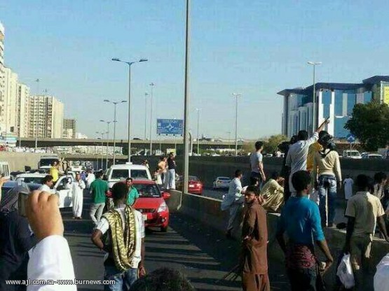 أوضحَ ذلك الناطق الإعلامي لشرطة جدة الملازم أول نواف البوق مبيناً في حوالي الساعة 8:05 من صباح هذا اليوم الخميس 10 محرم 1435 هـ ، تلقت غرفة عمليات الأمن بلاغاً مفاده قيام مجموعة من مخالفي نظام الإقامة بالتجمع أمام مبنى الترحيل بأعداد كبيرة ما أدى إلى إعاقة الحركة المرورية و إقفال شارع الستين (طريق الملك فهد- أحد المحاور الرئيسية بالمحافظة) لمدة إستغرقت 20 دقيقة وهم من جنسيات مختلفة باكستانية والأغلبية من الجنسية الأثيوبية .