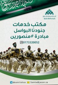 بتوجيه من المهندس هادي الدغريري رئيس بلدية محافظة صامطةوضمن مبادرة منصورين افتتحت البلدية مكتب خدمات مرابطي الحد الجنوبي وأسر الشهداء والذي يهدف لخدمة هذه الفئة العزيزة على الوطن وتسهيل وإنجاز كافة معاملاتهم دون الحاجة لمراجعة البلدية.