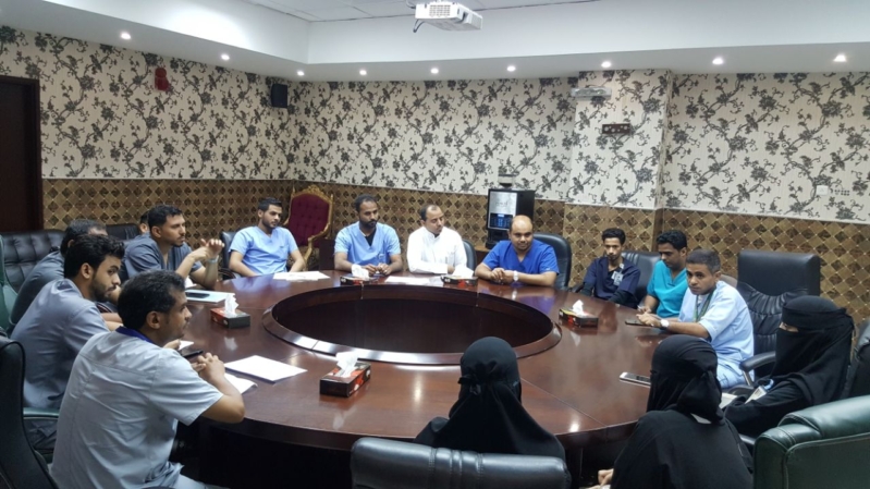 جاء ذلك خلال استقباله أمس وعقده اجتماعاً مع المتدربين المقبولين بالبرنامج، حيث رحب “معكفي” بهم، وشرح خلال الاجتماع الإجراءات والسياسات المتعلقة بالبرنامج، واستمع إلى استفساراتهم ومقترحاتهم، منوهاً بأن البرنامج يحظى باهتمام من مدير عام صحة جازان الدكتور عائض الشهراني ومدير مستشفى الملك فهد المركزي الدكتور عبدالله النجمي، وقدم “معكفي” خلال الاجتماع شكره وتقديره لمدير الخدمات التمريضية بالمستشفى أخصائي أول “جبران سهلي” وفريق عمله على جهودهم المبذولة والاستعدادات التي قاموا بها لبدء البرنامج، وشمل اللقاء برنامجاً تعريفياً للمتدربين في أقسام الطوارئ الرجالية والنسائية وعن سياسة العمل داخل المستشفى.