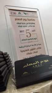 حيث قامت البلدية وتزامنا مع يوم المعلم برعاية الحفل والمشاركة بتقديم التهنئة والهدايا للمعلمات بمناسبة التعيين سائلين الله لهن العون والتوفيق في مسيرتهن العملية وبما يحقق للوطن التميز والإنجاز .