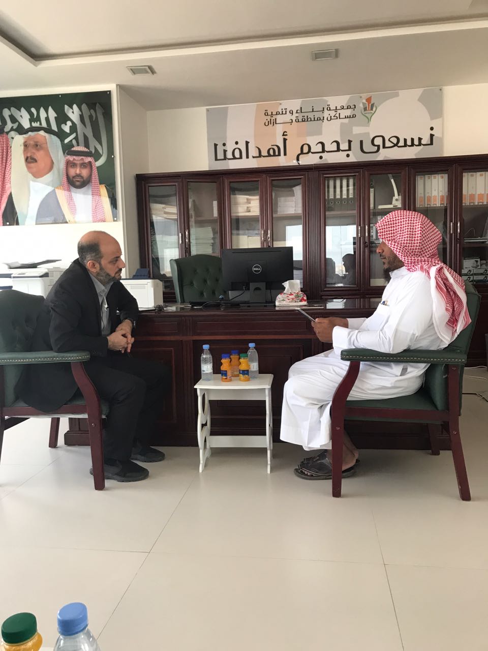 استقبل المدير التنفيذي لجمعية بناء وتنمية مساكن بمنطقة جازان في مكتبه صباح يوم الاربعاء الموافق 1439/1/28 المستشار والمدير،التنفيذي لشركة تكامل التنمية بالدمام الاستاذ / محمد أحمد عبدالوهاب