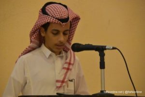 حيث أقيم حفل خطابي استهل بالقرآن الكريم ثم ألقى عضو لجنة التحكيم كلمة استعرض فيها مسيرة اختبار الطالب واجتيازه وحث جميع الطلاب الحافظين إلى التقدم للاختبار , كما ألقى والد الطالب كلمة وجه شكره للجمعية والقائمين عليها على ما يبذلونه من جهود في خدمة كتاب الله عز وجل , ثم استمع الجميع لنموذج من تلاوة الطالب منصور الفيفي .