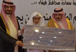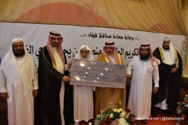 بعدها قامت الجمعية بتكريم الطالب بمبلغ 5 ألف ريال وتقديم درع الجمعية له ولوالده كما تبرع فاعل خير بمبلغ مماثل هدية للطالب ,كما قدم بعض الطلاب ومعلمي الحلقات هدايا للمحتفى به وكذلك نادي الحي بفيفاء.