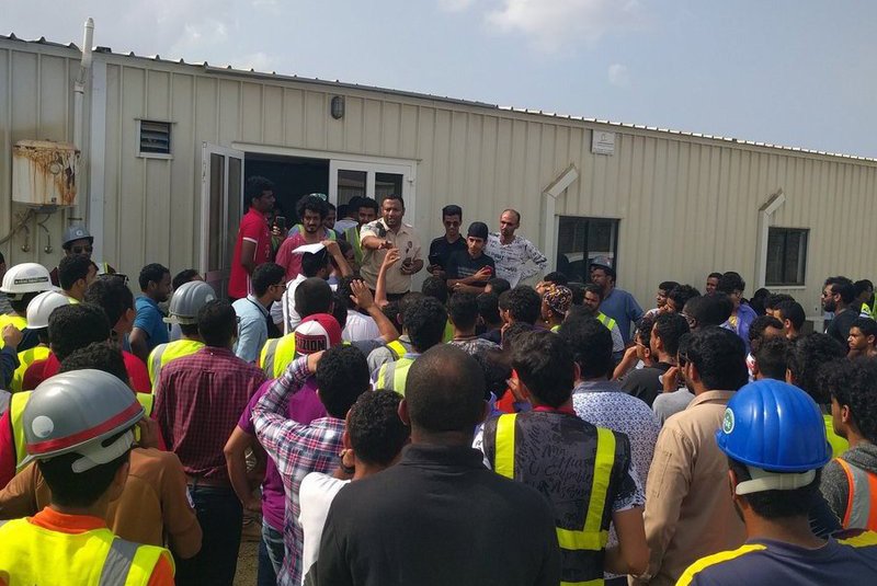 وفقاً لمجموعات من موظفي شركات إنشاءات في مدينة جازان للصناعات الأساسية والتحويلية بجازان أن زملاءهم اجتمعوا بمدير عام فرع وزارة العمل والتنمية الاجتماعية بمنطقة جازان، بعدما فشلوا في مقابلة الوزير خلال زيارته للمنطقة، مؤكدين في حديثهم لـ”سبق”، أن مدير الفرع قال لهم إن الإجراء ليس فصلاً، وإنما انتهاء عقود، في الوقت الذي لجأ الآلاف لوزارة العمل لإنصافهم؛ كونهم عندما تم توظيفهم لم يبلغوهم بأن عقودهم لم تجدد بعد هذا التاريخ.