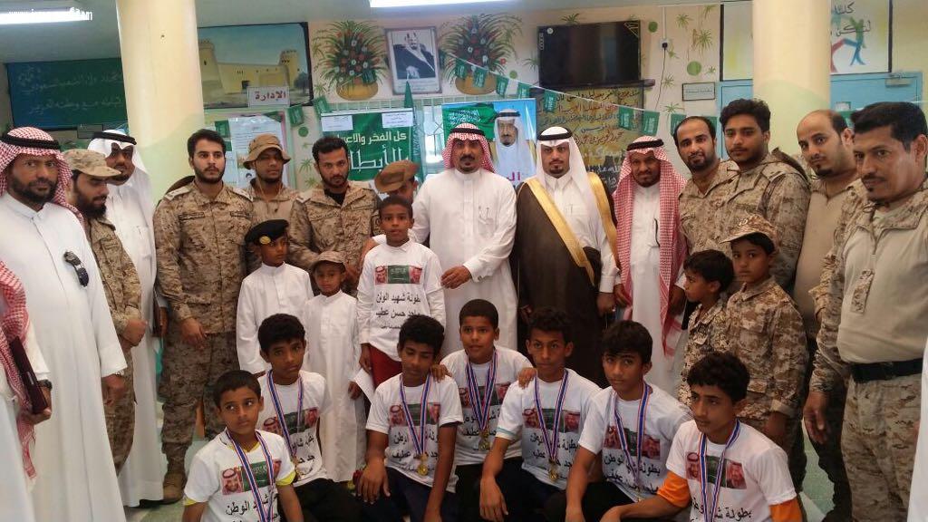 محافظ أحد المسارحة يُكرُّم أبناء الشهيد “ماجد عطيف” ويُدشن قاعة باسمه في مدرسة الحصامة الابتدائية عائشة طاهر _ المركز الإعلامي صحيفة صوت جازان كرَّم محافظ أحد المسارحة الأستاذ عبدالله بن محمد الريثي اليوم الخميس ، أبناء الشهيد ماجد حسن عطيف ودشن قاعة باسمه في مدرسة الحصامة الابتدائية . وذلك بحضور شيخ قبيلة العطفة بالمسارحة علي منصور عطيف، ومن القوات البحرية النقيب البحري سامي غلاب العنزي نيابة عن العقيد البحري الركن/ هزاع قطيم المطيري قائد كتيبة المشاة البحرية الثانية اللواء الثاني، رافقه الملازم أول خالد سعد الشلوي والملازم أول برجس محمد الناصر والملازم راكان الغامدي وعدد من أفراد الكتيبة ، كما حضر مدير مكتب تعليم المسارحة والحرث الأستاذ علي بن محمد عواف وعدد من التربويين والأهالي . وثمن “الريثي” حرص مدرسة الحصامة على تفعيل دورها الوطني تجاه شهداء الوطن ، سائلاً الله أن يحفظ الوطن والقيادة والشعب والمرابطين من كل مكروه ، وأن يرحم الشهداء . من جهته ألقى قائد مدرسة الحصامة حسين أحمد أبو السيل كلمةً رحب خلالها بالضيوف الكرام وقال : كلنا في جهاد أنتم تجاهدون على الثغور والحدود بالسلاح والأرواح ونحن نجاهد بالفكر واللسان والقلم، أنتم في أرض المعركة ونحن في أرض المدرسة. وأضاف البطل الشهيد من أبناء هذه القرية وهو من الأبطال الذين ضحوا بأرواحهم فداءً للحرمين الشريفين ولهذا الوطن، ومن باب الوفاء قمنا بتخصيص قاعة باسمه كما أقمنا بطولة رياضية تخليداً لبطولته وشجاعته ، رحمه الله وغفر له وتقبله من الشهداء. وأوضح شيخ قبيلة العطفة بالمسارحة علي منصور عطيف أن الهدف من تسمية القاعة باسم الشهيد هو تقديراً للشهداء وأسرهم ولربط المدرسة بالمجتمع وتقديم نموذج مشرف للطلاب ، مشيراً إلى وجوب الإفتخار والإعتزاز بما قدمه الشهداء ، في ردع كيد المعتدين على حدود بلادنا الغالية . وأضاف جنودنا البواسل هنيئاً لكم أن اختاركم الله حماةً لهذا البلد العظيم من طمع الطامعين ومكائد الحاقدين الذين يخططون لغزو بلادنا بلاد الحرمين الشريفين، هنيئاً لكم بهذا الرباط ولكم الأجر والثواب، ونحن جميعاً فخورون بكم وقلوبنا معكم. ثم كلمة للقوات البحرية ألقاها نيابة عنهم الرقيب أول حسن محمد الزيادي شكر خلالها قائد مدرسة الحصامة على هذا الحفل داعياً للشهيد بالرحمة والمغفرة ومتمنياً لأبنائه التوفيق والنجاح. عقب ذلك شارك ابن الشهيد عطيف بكلمة وطنية تضمنت الدفاع عن الوطن والإخلاص في حبه نالت إعجاب الحضور . شهد ختام التدشين تكريماً لأبناء الشهيد وأسرته وللضيوف في جو يسوده المودة والوفاء والولاء والعرفان .
