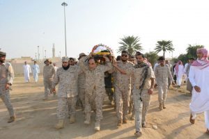 وعقب الصلاة نقل وكيل الإمارة للتنمية تعازي خادم الحرمين الشريفين الملك سلمان بن عبدالعزيز آل سعود , وسمو ولي عهده الأمين – حفظهما الله – لوالد وذوي الشهيد.