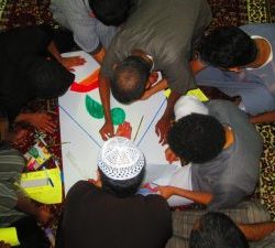 وقبل ختام الحفل فاجأ أحد الدارسين الجميع طالبا من الجميع السماح له بتقديم جائزته التي حصل عليها في الحفل هدية للأستاذ محمد الساحلي معلم اللغة الانجليزية اعجابا وعرفانا منه لما قدمه لهم.